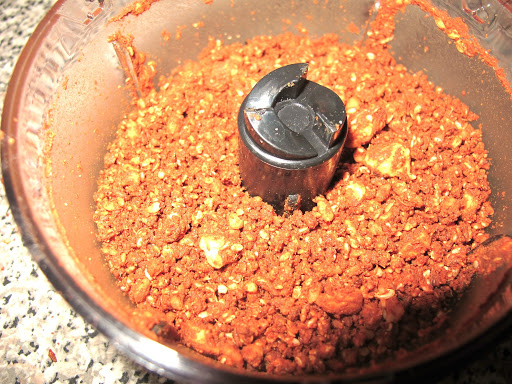 Once gathered and roasted, I tipped the spies into my food processer and let it do it’s magic. Once the spices are ground (use a mortar and pestle or a spice grinder if you want it really finely ground) add the almonds and pulse. I’ve found if you add the almonds too soon and keep processing you’ll get dukkah flavoured almond butter….tasty but not quite what we’re after. The almonds also left some bigger parts but again, I’m all for the texture.