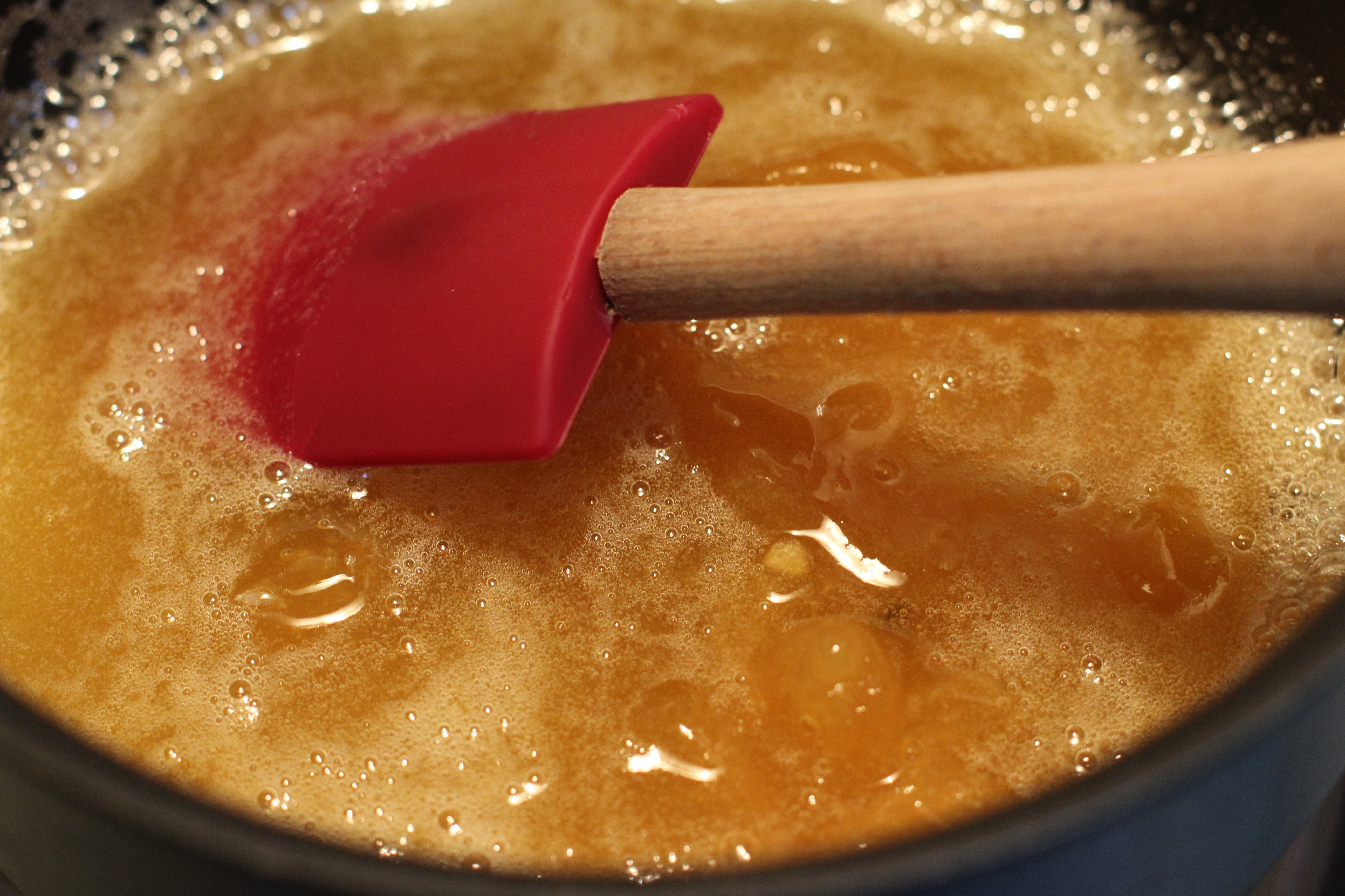 Once all the sugar has dissolved add the gelatin to the hot sugar syrup.