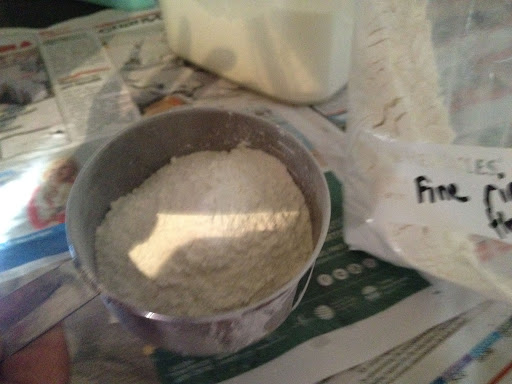 When blended add the 1 cup of fine rice flour, mix and leave in a warm spot to rise for at least 6 hours.You want this mixture to have the consistency of a thick cake or muffin batter. It should hold it’s shape when you spoon it. If it’s coolish, winter weather I will put the oven on a warm setting, cover the dough with a damp cloth and place in there for a short while.
