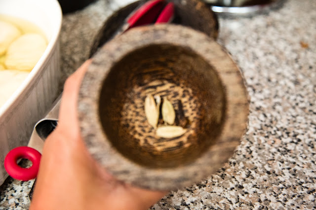 | Bruising the cardamon and cloves a little in mortar and pestle helps release the flavours a little more |
