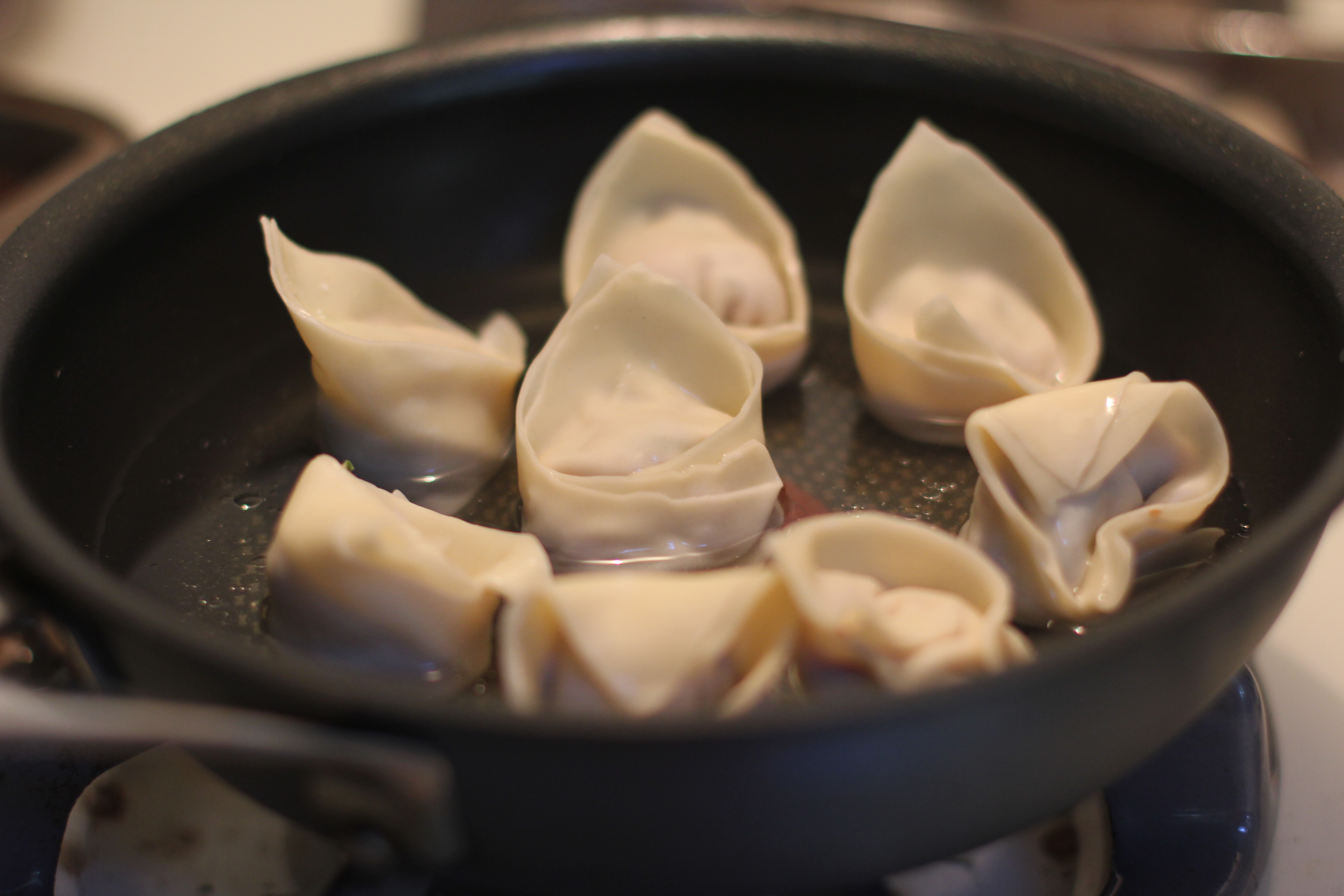 I braise my dumplings, this means I pour a small amount of oil into a frying pan, add my dumplings and them pour in a centimetre of water. I then place the whole lot on medium heat with a lid on. When the water has evaporated and the dumplings have a bit of a crust and colour, the insides are cooked and ready to serve.