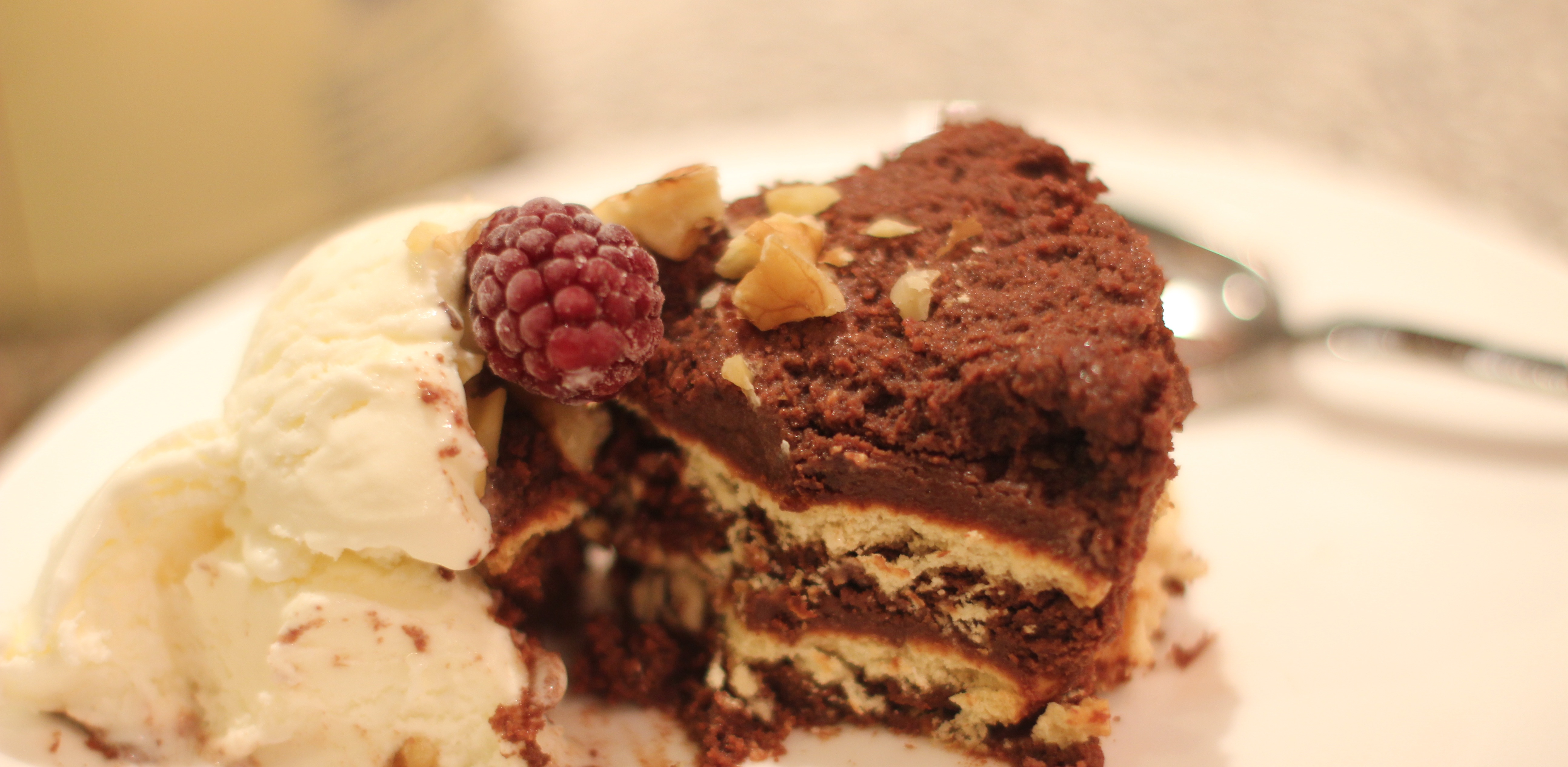 After the layer of biscuits add a third of the icing mixture, followed by biscuits etc until you finish up with the icing on top.