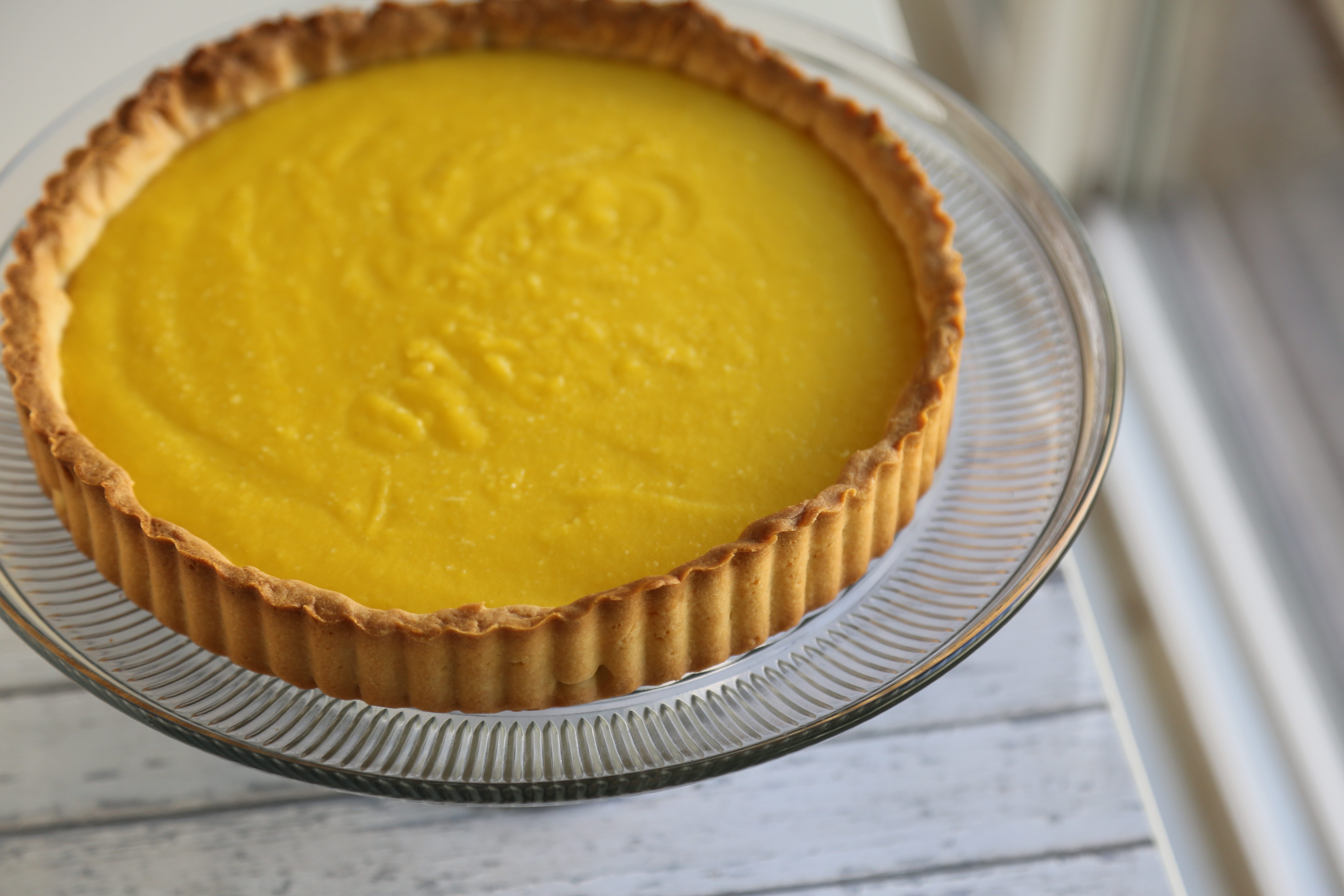 In a medium saucepan place all the ingredients for the filling and place on a low heat. Using a whisk stir continuously until the mix thickens to the consistency of a lemon curd. You will get eggy bits, don’t panic, just strain the mixture into the tart shell and bake for another 20 minutes in the oven at 180 celsius (350 fahrenheit).