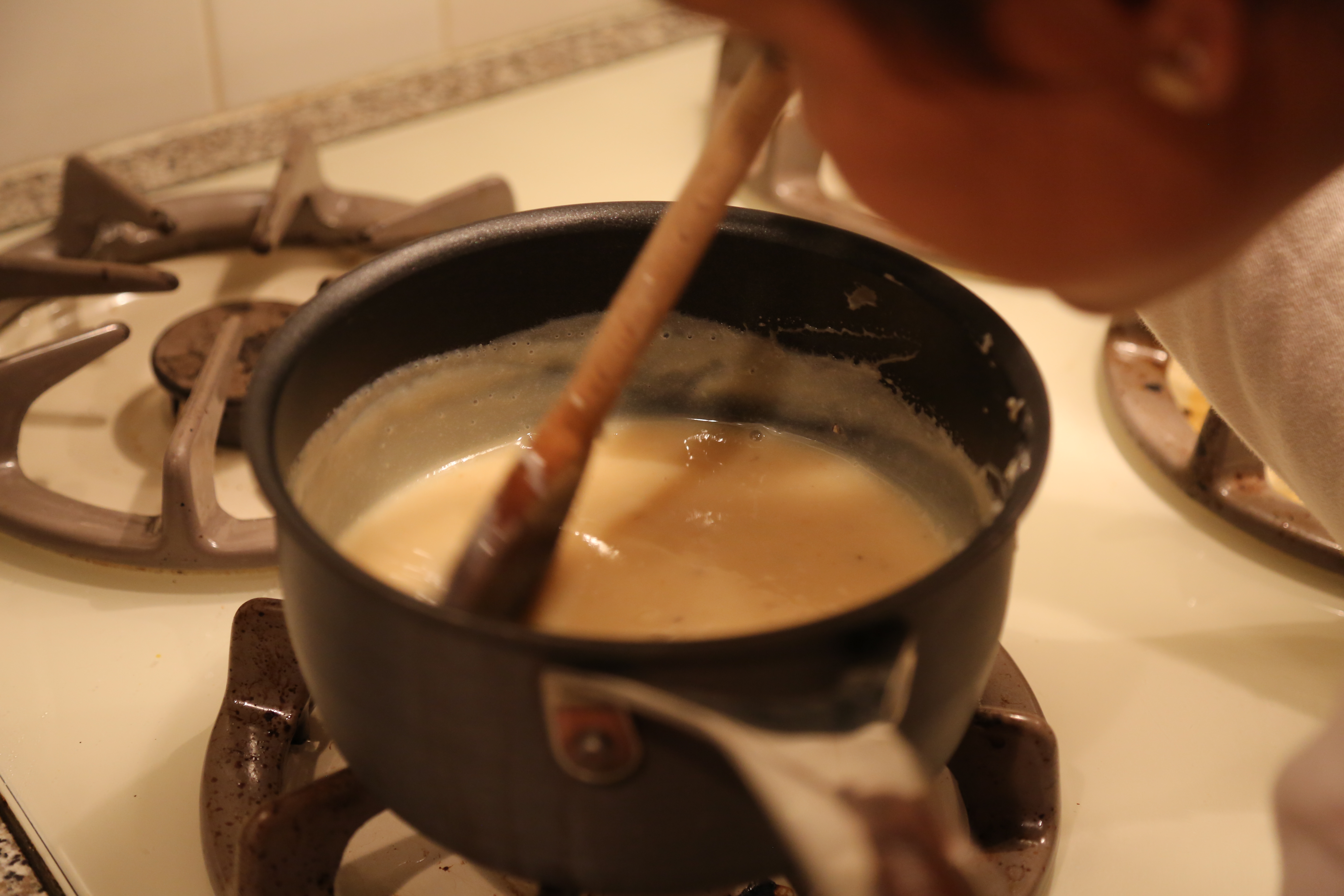 Heres the hard part, keep stirring. The whole mixture will keep changing from beige to brown to dark brown.