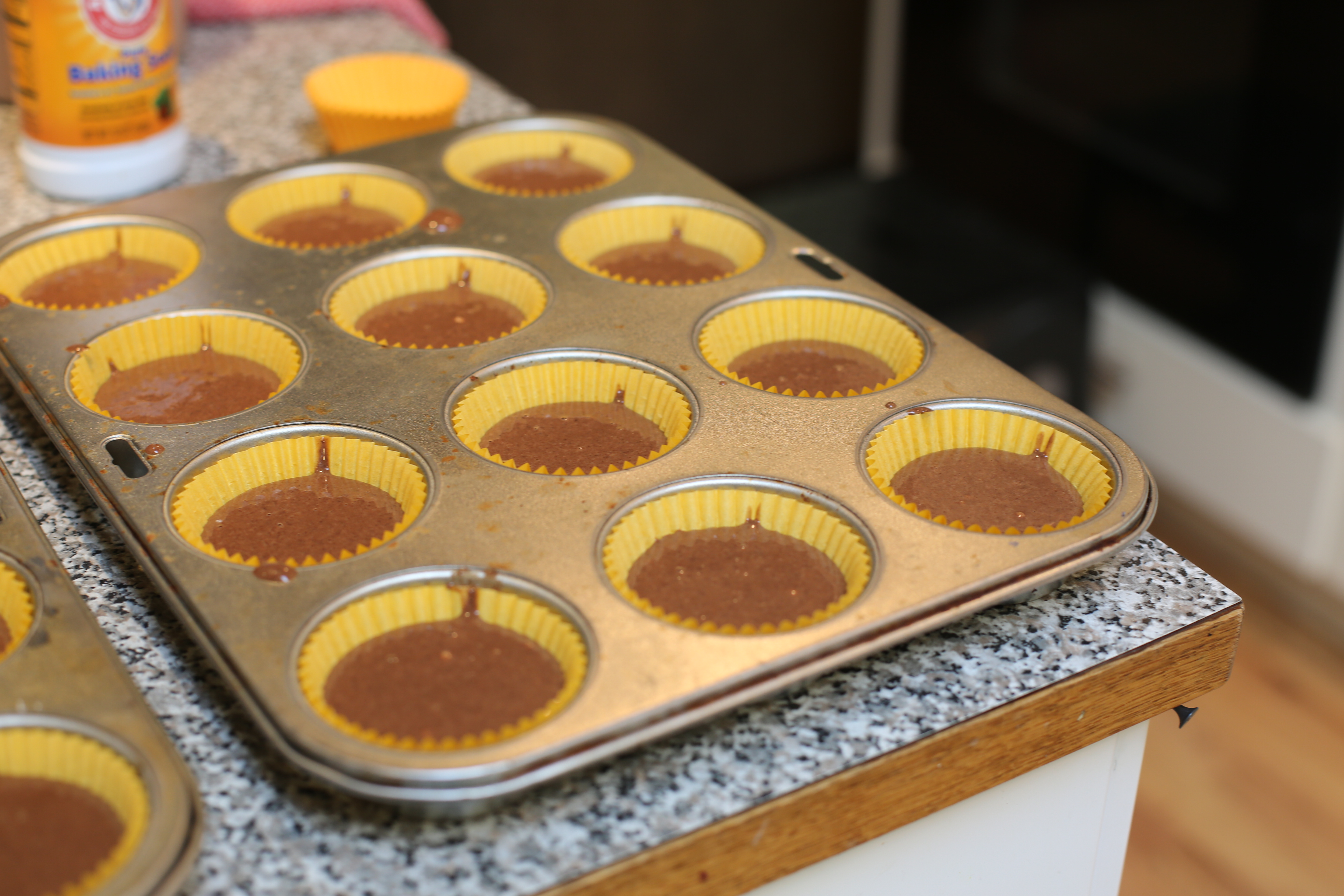 Pour about 1/4 of a cup eat into your cupcake tray and bake for 25 minutes in the oven. Remember to rotate the trays if your oven isn’t fan forced.