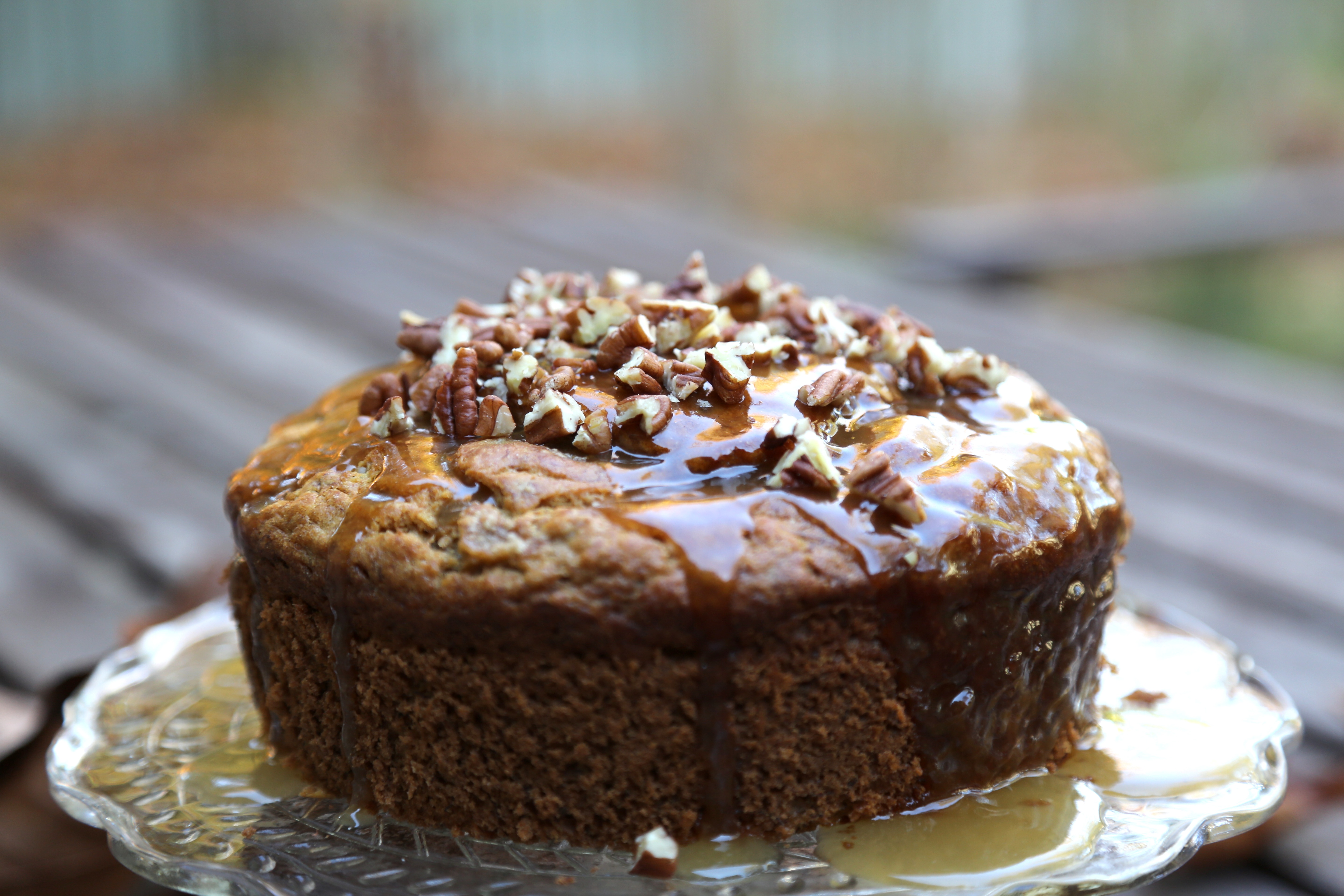 Banana Cake with a Maple Glaze and Pecans