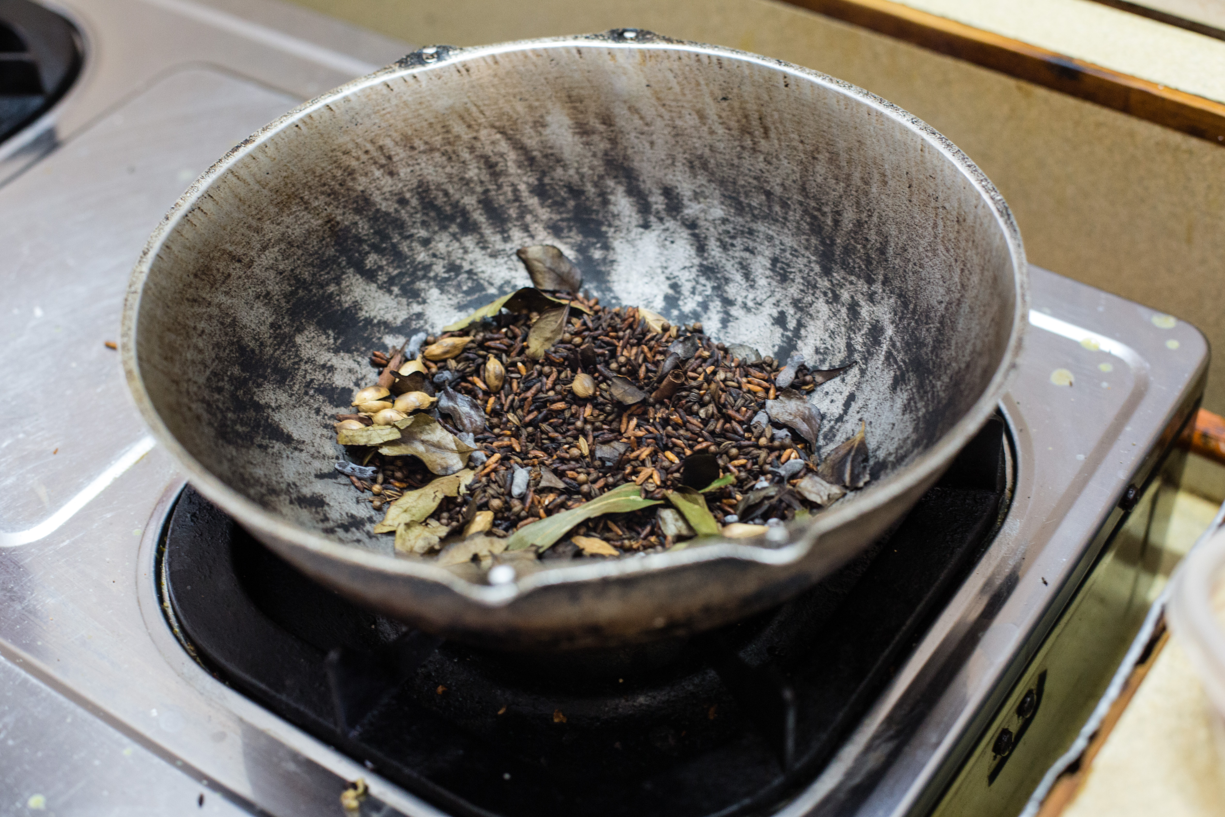 When cool to touch, place the spice mix in a grinder and grind to a fine powder.