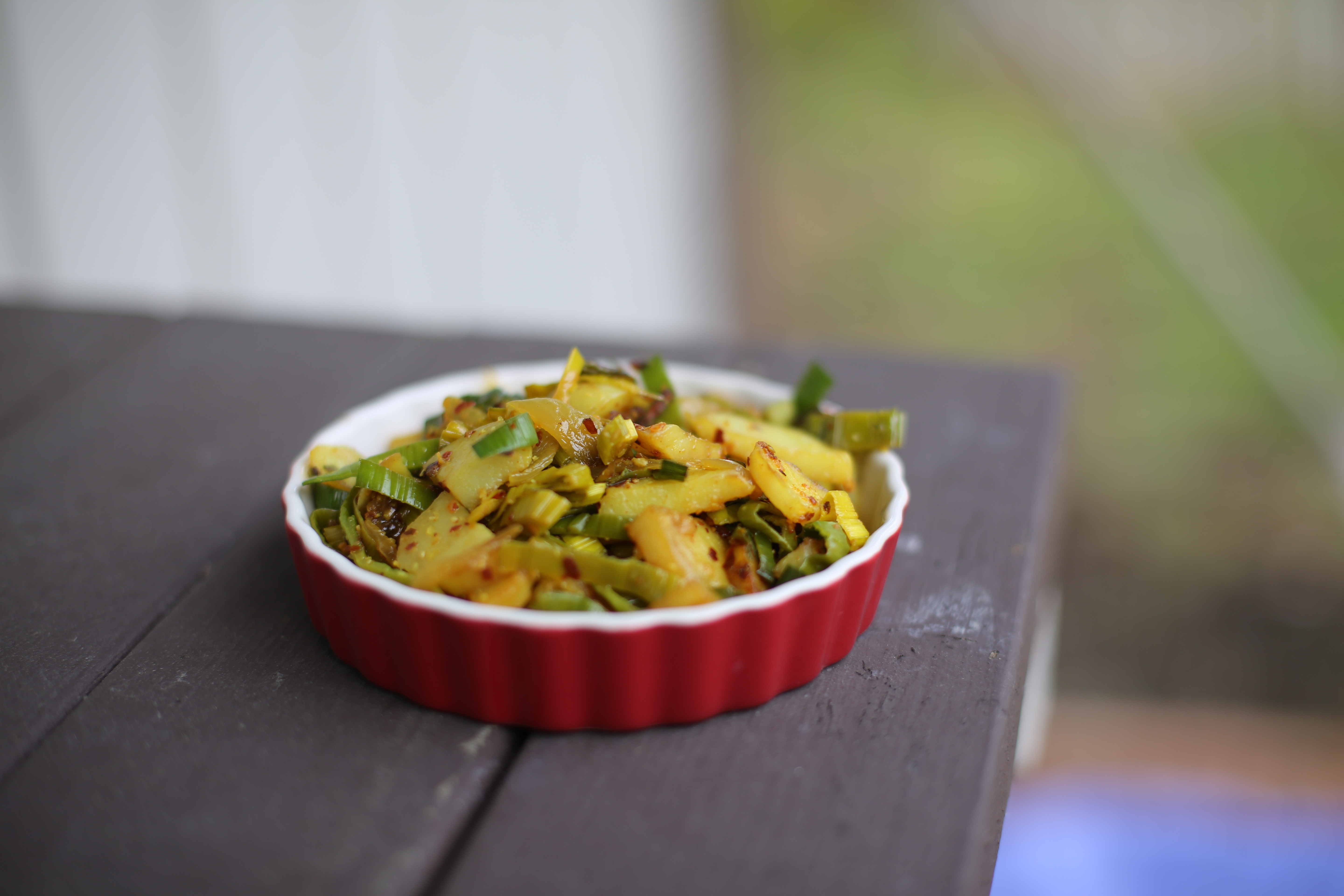 The green bits are fabulous in a lankan style friend rice, or even as a simple garnish, here I’ve updated the friend potato recipe to include leeks and make like a little fancier. I personally love the green parts, a subtle oniony flavour that becomes sweet when cooked.
