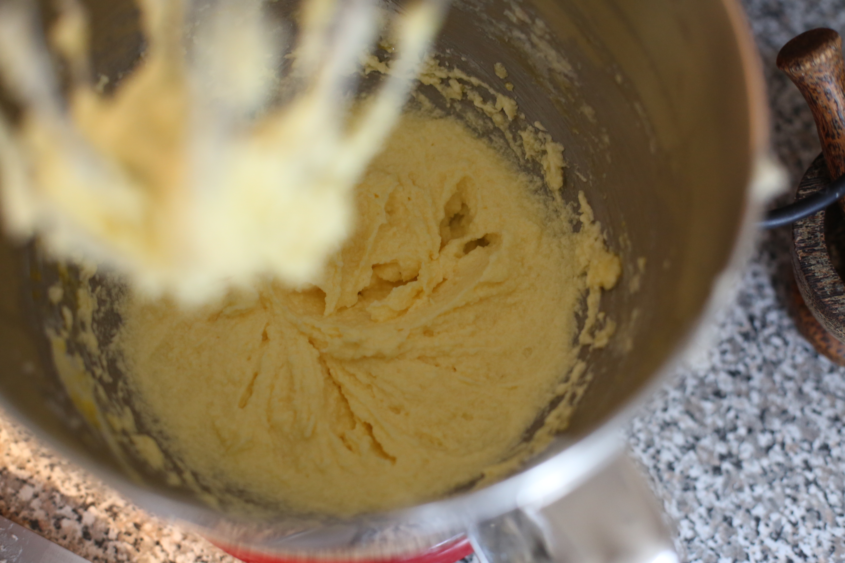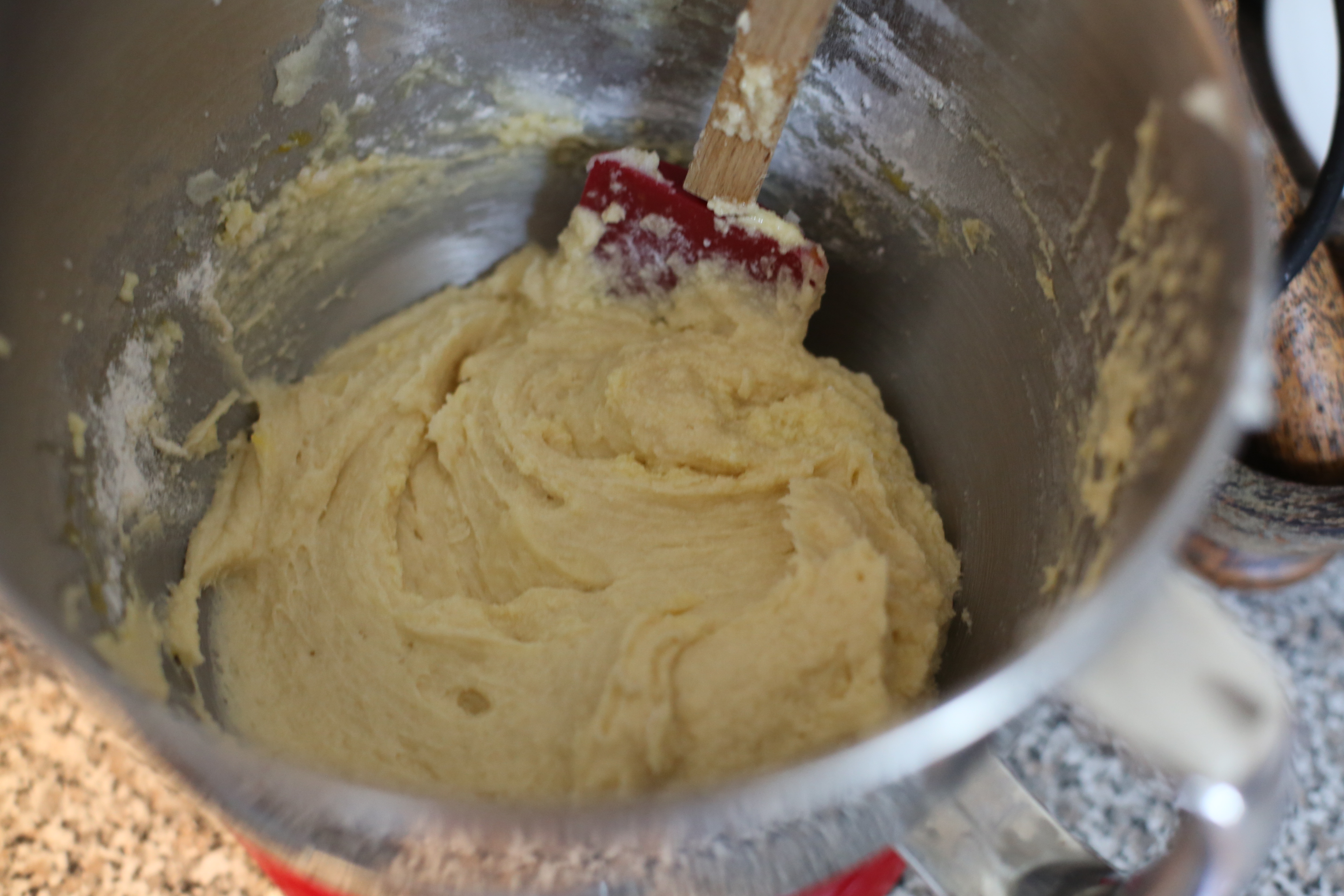 Add the dry ingredients in 3 parts, alternating with the milk and vanilla. With each addition, beat until the ingredients are incorporated but do not over beat. Using a rubber spatula, scrape down the batter in the bowl to make sure the ingredients are well blended.