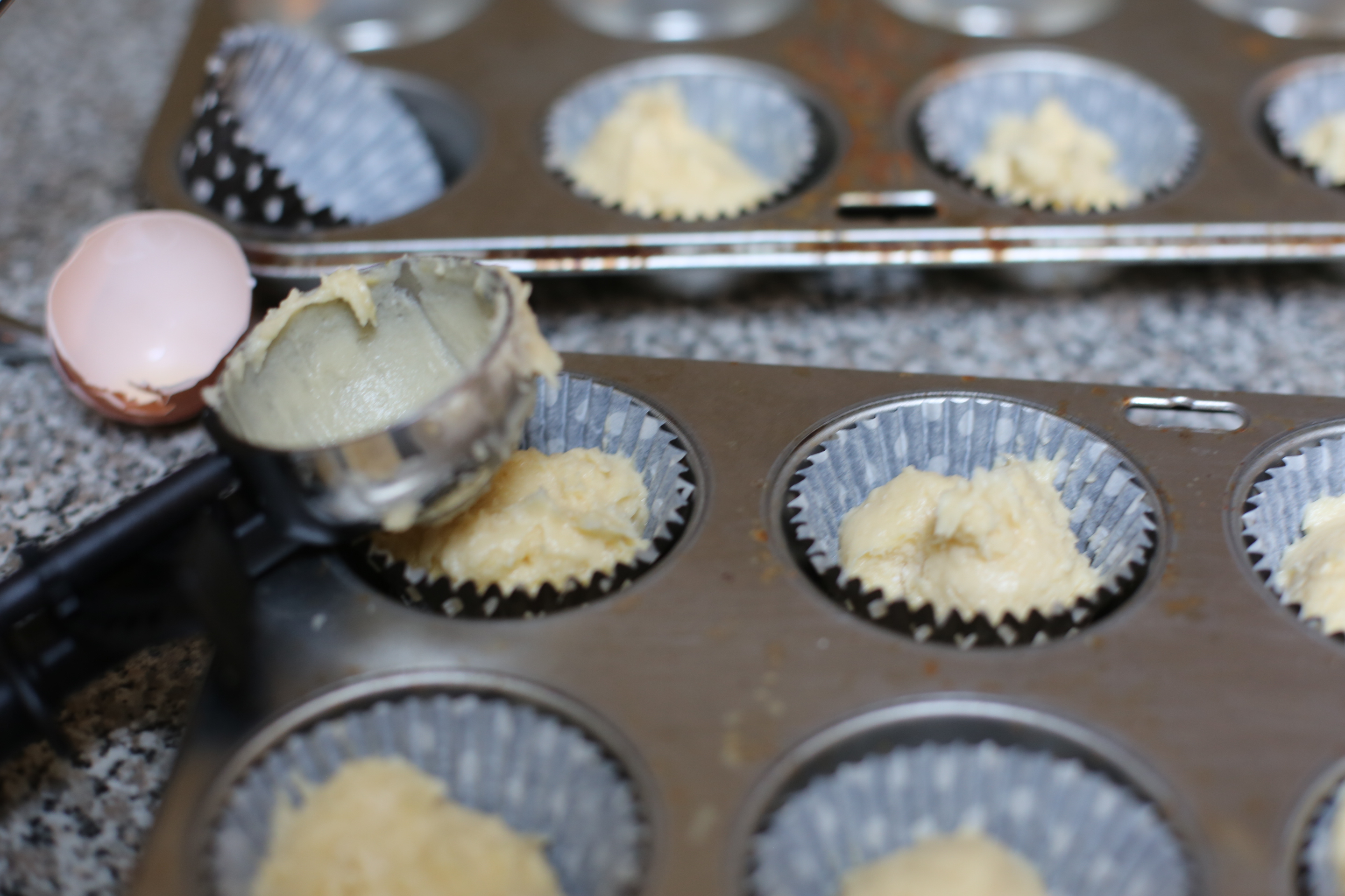 Preheat oven to 350F/180 C. Line muffin tins with cupcake papers. In a small bowl, combine the flours. Set aside.