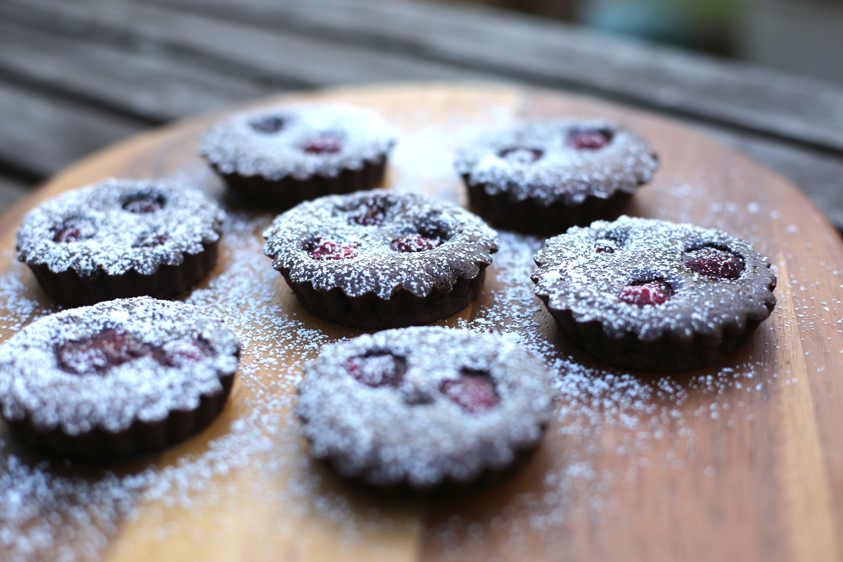 This week we also bought a deep freeze, to try and unburden our poor refrigerator.  You see, it’s the kind of place where things fall out as soon you open the door. Generally, full, frozen, glass-like things. Now, most of these solid missiles have been relegated to the garage, and our freezer is no longer a cavernous mess where to find one thing, you must pull out all things. These chocolate tarts were part of my attempts to stock the “baked goods” sections of our freezer, along with some sticky date puddings for good measure. Sometimes the need for dessert shouldn’t have to wait. Besides, why conform to this silly notion that vegetables and meat should stock a deep freezer?  Ours has baked goods, ice cream and the bowl for the ice cream maker, lest we run out of ice cream!