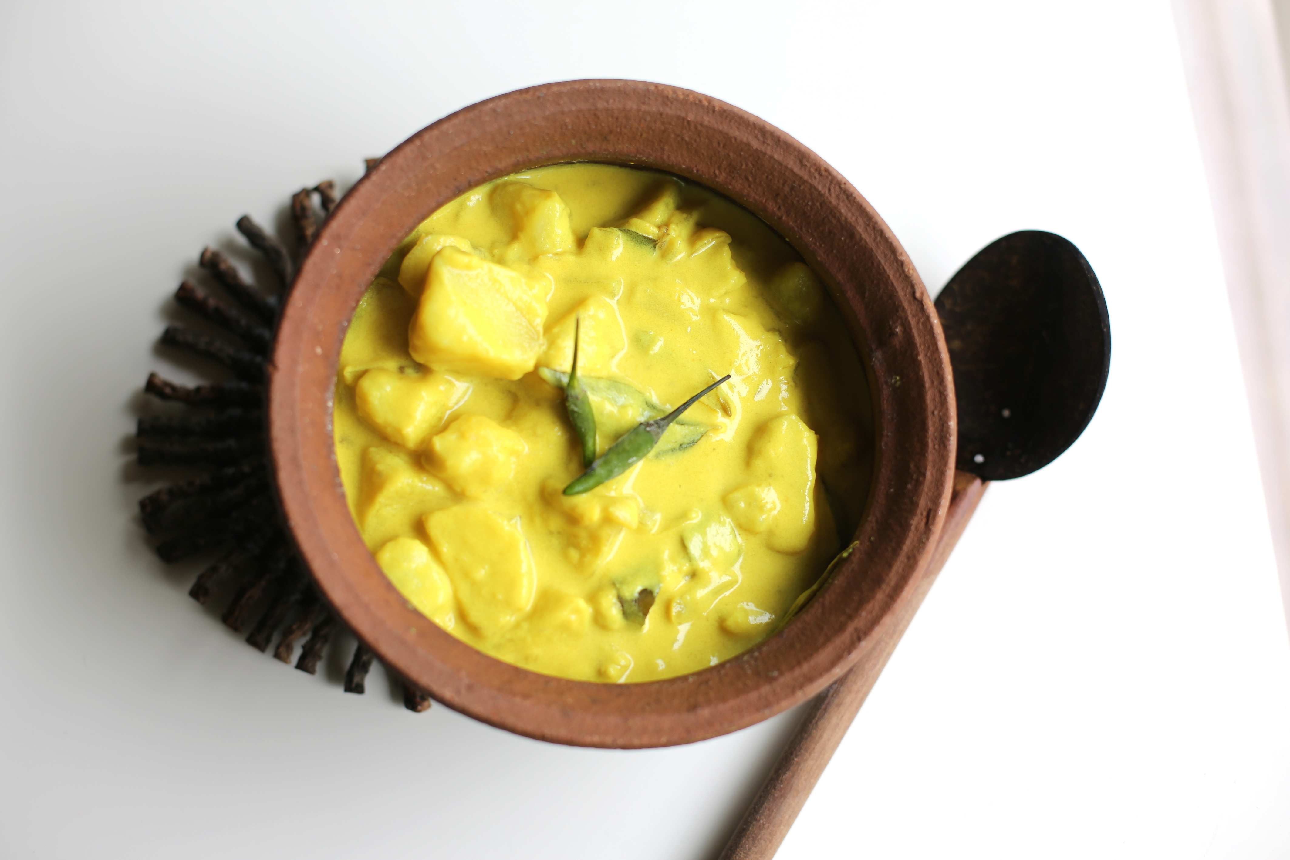 Cook until the potatoes are just done and add the coconut milk . Simmer for a few minutes until the potatoes are done and the gravy has thickened. Season to taste