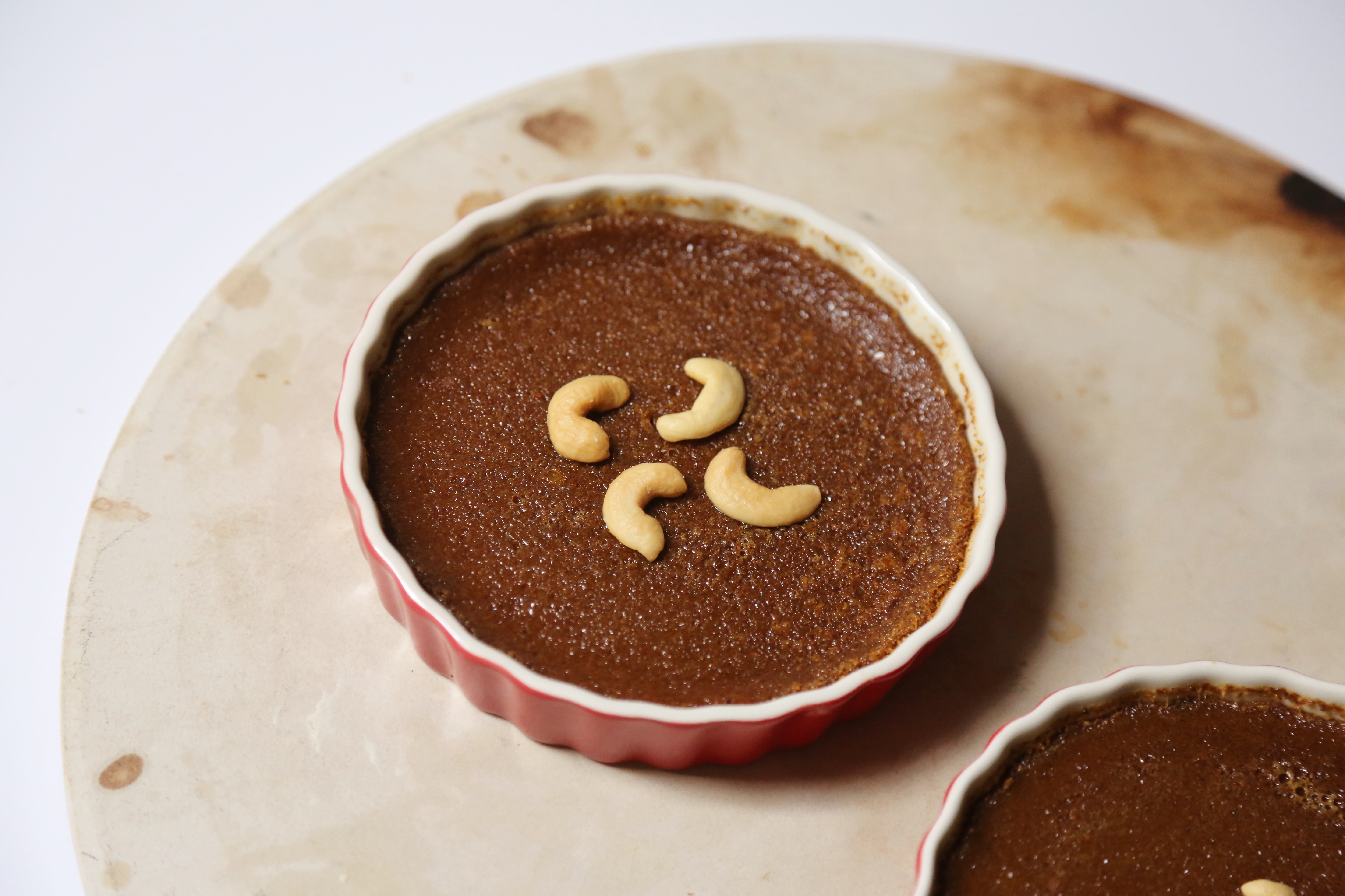 Wattalappam is one of my all time favourite Sri Lankan desserts, a delicious sweet and spicy custard of coconut milk and kithul/palm sugar. It’s really dependent on the quality of the palm sugar, and nowadays they dark brown rolls of palm sugar available at most Asian groceries will be perfect for the job. I love adding my favourite spices, cinnamon, cardoman, clove and a touch of nutmeg to lighting spice the custard.