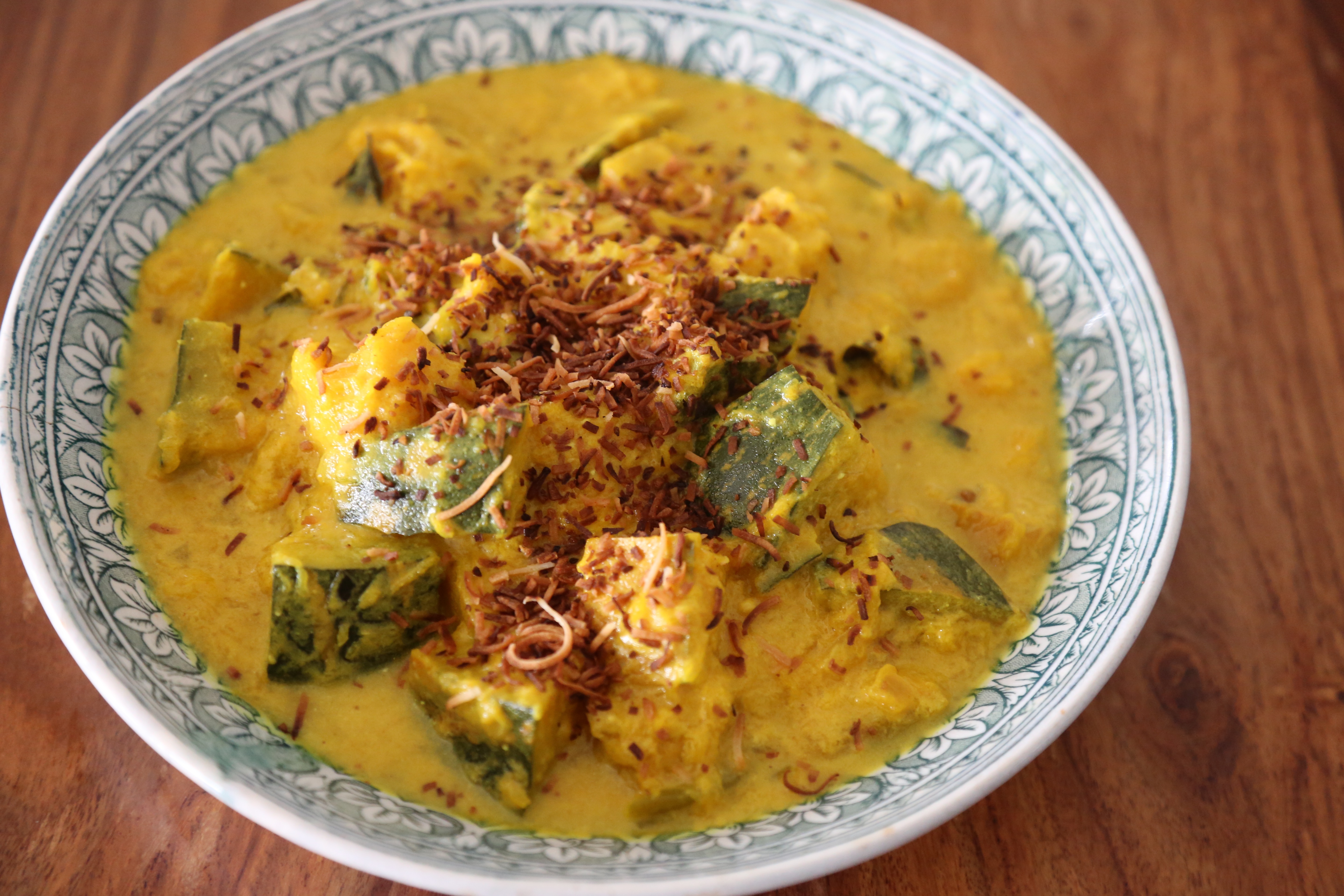 As you probably already know, I’m a big lover of pumpkin. Especially pumpkin soup. It’s warming, sweet, creamy and comforting. However, when I have made it for Sri Lankan relatives, especially male ones, they don’t seem to get it. I suspect this curry has a lot to do with it. Pumpkin, cooked Sri Lankan style, is heady with spices and fragrant to the max. It’s the same type of warm, comforting and creamy without the sweetness of roasted butternut. This dish is decidedly savoury, while I think pumpkin soup, especially the kind made with butternut can be a bit of a fence sitter. I for one will always be pumpkin fan, in whatever style you serve it to me!
